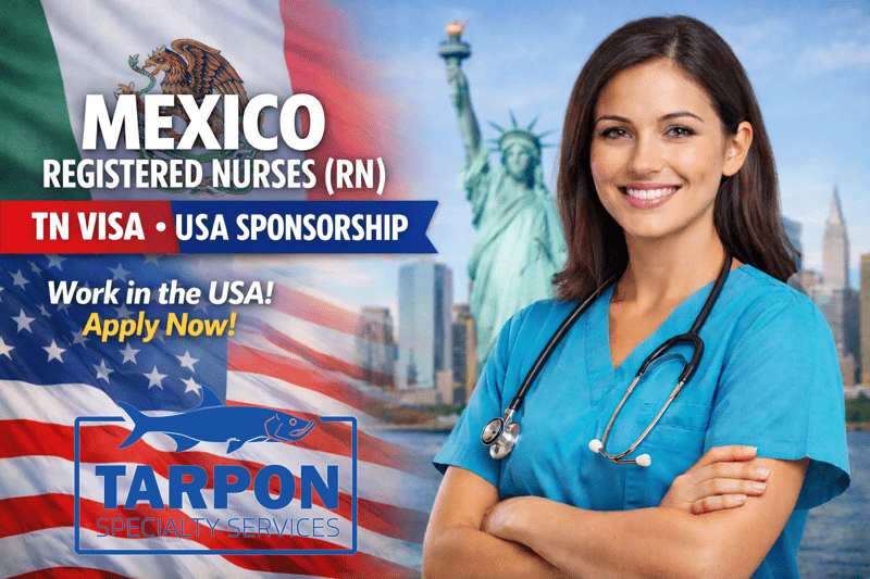 Ready to advance your nursing career in the United States? Tarpon Specialty Services with headquarters in Texas, USA is actively recruiting experienced Registered Nurses from Mexico to join healthcare facilities across the U.S. We're committed to making your transition seamless and supporting your professional growth every step of the way.